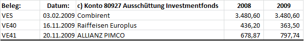 Konto 80927 – Ausschüttung Investmentfonds 2008 und 2009: