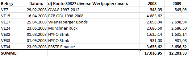d) Konto 80827 – diverse Wertpapierzinsen 2008: