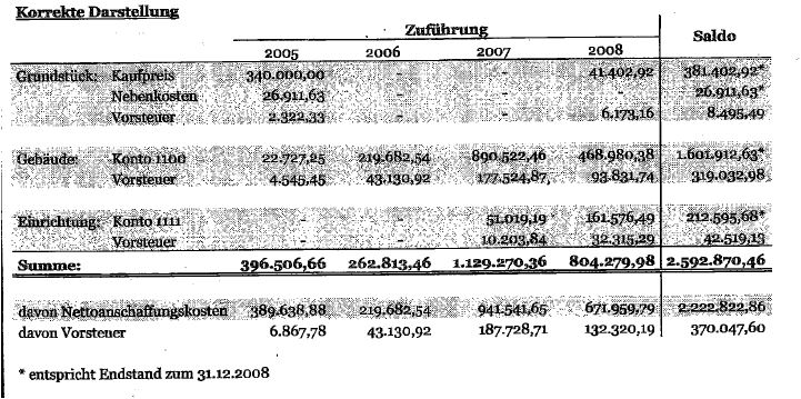 Die Gesamtinvestition stellt sich entsprechend dem glaubwürdigen Vorbringen der Bf. betraglich folgendermaßen dar: