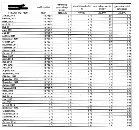 Welche Zeiträume das genau waren, steht aber bisher noch nicht fest, da etwa das Schreiben von Magyar Államkincstár vom 9.1.2015  von keiner beruflichen Tätigkeit der Mutter "von 01.2011 bis 08.2011 und von 01.2012 bis lfd" spricht, aber diesem Schreiben zufolge Österreich "seit dem 01.2011 bis 08.2011, von 01.2012 bis 01.2012, von 03.2012 bis 05.2013" zuständig gewesen sein soll.