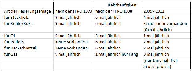 Die Änderungen der Kehrordnung könnten der folgenden Tabelle entnommen werden: