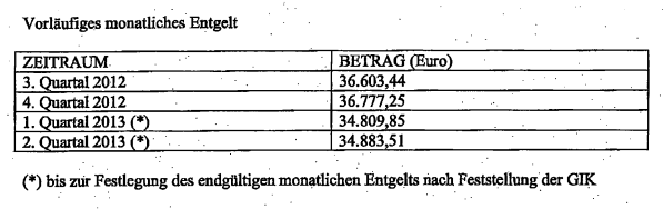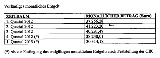 "Grundlage für die Berechnung des monatlichen Entgelts