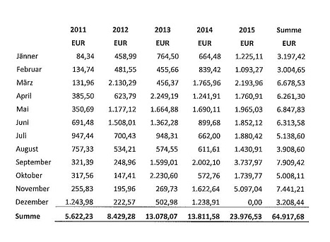Als Bemessungsgrundlage für die Selbstberechnung wurden die Jahresbruttospieleinnahmen der in Österreich registrierten Teilnehmer mit einer inländischen Wohnanschrift, die von der Abgabenschuldnerin bekannt gegeben worden sind, herangezogen.