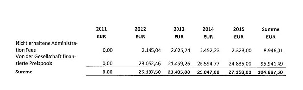 FPP Turniere lt. Pkt. 4.3.ii) | | 105,24 |