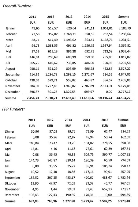 Freeroll-Turniere lt. Pkt. 4.3.i) | | 2.833,01 |