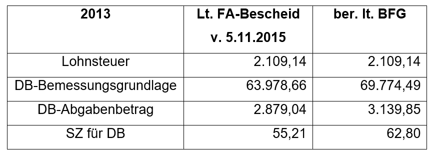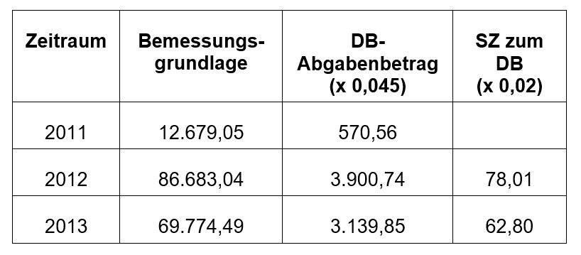 Da die von Herrn ***7*** dem GPLA-Prüfer übergebenen Honorarnoten i.H.v. 7.418,50 € der Frau ***11*** betreffend das Streitjahr 2013 versehentlich bei der bescheidmäßigen Neu-Festsetzung der Abgaben und der Säumniszuschläge bis dato nicht berücksichtigt wurden, werden die angefochtenen Bescheide des Veranlagungsjahres 2013 betreffend Dienstgeberbeitrag samt Säumniszuschlag wie folgt abgeändert (auch dies wurde den Parteien bereits wie o.a. mit Schreiben vom 27. bzw. 28. Februar 2020 zur Kenntnis gebracht):