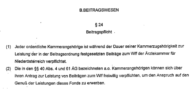 Wie oben ausgeführt, meint diese Formulierung offenkundig, dass zwar der Beitritt als außerordentliches Mitglied bzw. zum Wohlfahrtsfonds (im Gegensatz zur Pflichtmitgliedschaft als praktizierende Ärztin oder als praktizierender Arzt) freiwillig ist, aber ab diesem Beitritt (bis zur Beendigung der Mitgliedschaft) die Beitragsleistungen verpflichtend sind.