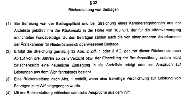 Unbeschadet der eigenartigen Formulierung ("freiwillig verpflichten") in § 11 Abs. 2 und § 57 Abs. 2 Satzung des Wohlfahrtsfonds der Ärztekammer Niederösterreich sowie in § 76 Abs. 1 ÄrzteG 1994 (im geltenden Ärztegesetz ist diese Formulierung nicht mehr enthalten) lagen auch hinsichtlich der Beiträge der Mutter für den Wohlfahrtsfonds der Ärztekammer Niederösterreich Pflichtbeiträge vor.