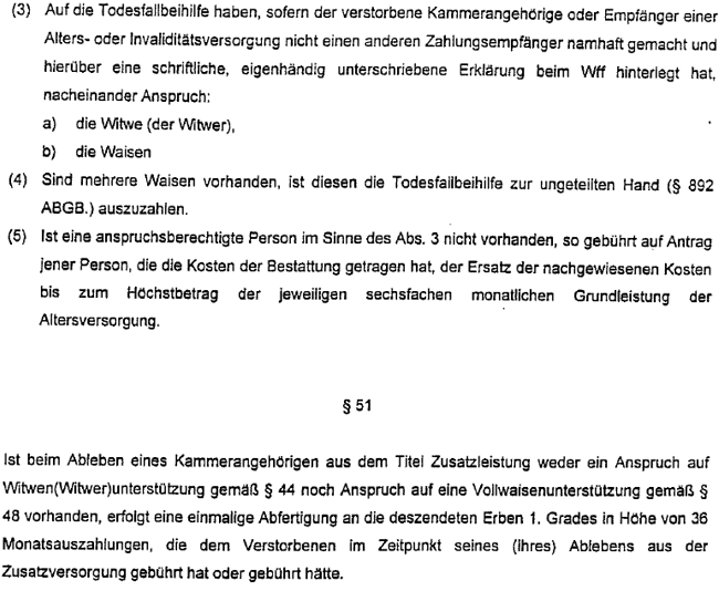 Die Mutter hätte "die freiwillige außerordentliche Kammerzugehörigkeit im Zeitraum 1.4.1994 bis zu ihrem Tod auch wieder zurücklegen" können. Sie hat dies aber nicht getan, zumal damit ein Leistungsverlust verbunden gewesen wäre.