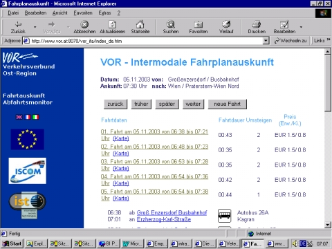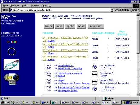 Die Verbindungen zwischen Probstdorf bzw. Groß Enzersdorf einerseits und Wien (Veterinärmedizinische Universität bzw. Bahnhof Wien Nord) andererseits wurden an Hand der elektronischen Fahrplanauskunft www.vor.at festgestellt. Die Fahrplanauskunft bezieht sich zwar auf das Jahr 2003; Hinweise dafür, dass im Jahr 2001 wesentlich andere Verhältnisse bestanden haben, sind freilich nicht ersichtlich. Eine derartige Änderung der Verhältnisse wird auch nicht behauptet.