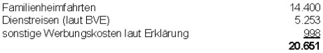 Die Werbungskosten errechnen sich somit insgesamt wie folgt (Beträge in Schilling):