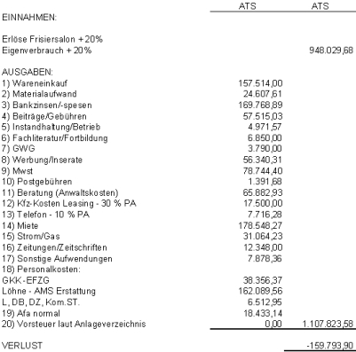 Verlust aus Gewerbebetrieb lt. Einnahmenausgabenrechnung | -159.793,90 S |
