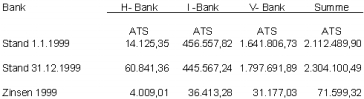 Zu den Bankschulden wurde folgendes bekanntgegeben: