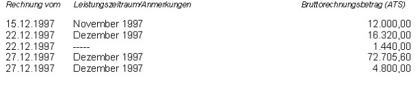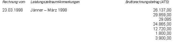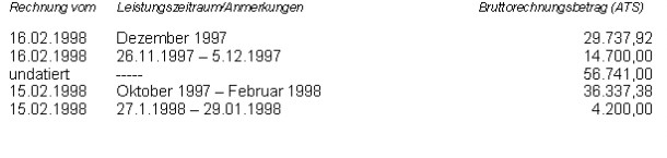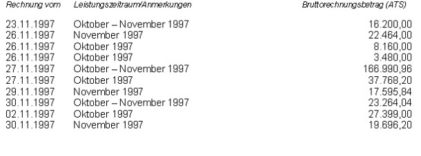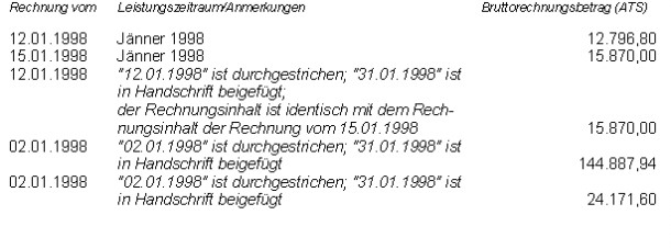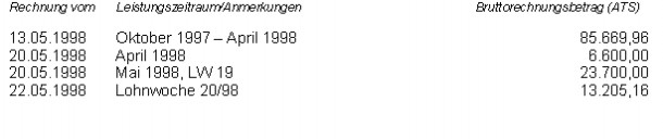 Lt. Aktenvermerk (7. Oktober 1998) haben die Abgabenbehörden vom Bw. folgende Rechnungen der KEG an die Bau-GmbH übernommen: