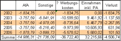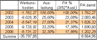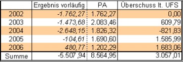 2 ) Die Einkünfte 2003 bis 2006 werden wie folgt festgestellt: