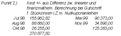 Als Basis für die KESt-Gutschriften wurde von der Bp der anteilige Zinsertrag nach der finanzmathematischen Methode anstelle der linearen Methode ermittelt.