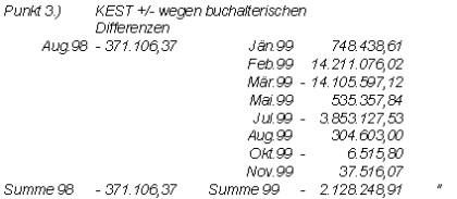 "(Ergänzend wird festgehalten, dass in obiger Niederschrift auf Grund eines Rechenfehlers die "KEST bei Übernahme durch Kunden progressiv berechnet" fälschlicherweise mit dem Betrag von 15.641.031,00 S an statt 15.647.156,00 S angeführt wird.)