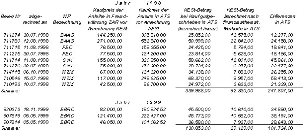 Gesamtsumme KESt 1998 in ATS | 5.427.232,69 S | |||||||||