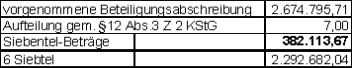 "Im Jahresabschluss 1999 scheinen gem. § 12 Abs 3 Z 2 KStG zu verteilende Abschreibungen in Höhe von S 2.674.795,71 auf.