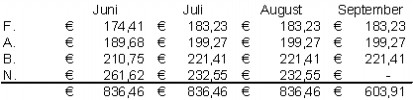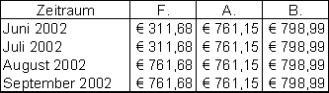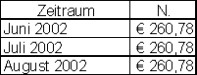 Die Unterhaltskosten für Sohn N. betrugen im Zeitraum Juni bis August 2002: