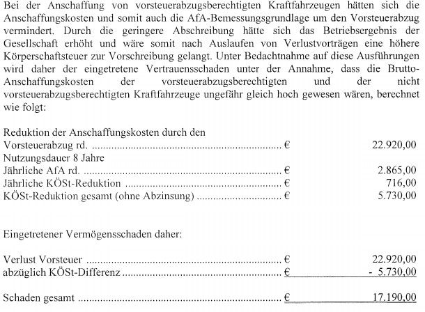 Bei PKW ist der Vorsteuerabzug in Höhe von € 7.300,- nicht zulässig."