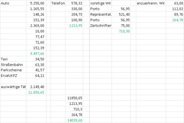 Hinsichtlich dieser geltend gemachten Betriebsausgaben ("Werbungskosten") ist nachfolgendes festzuhalten: