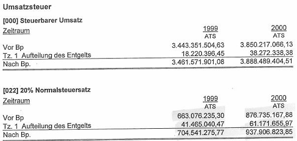 Die Bw., erklärte für die Jahre 1999 und 2000 folgende Umsätze:
