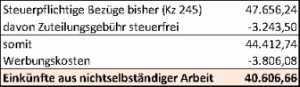 Die im Rahmen der Veranlagung zu erfassenden steuerpflichtigen Bezüge aus nichtselbständiger Arbeit ermitteln sich deshalb wie folgt: