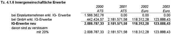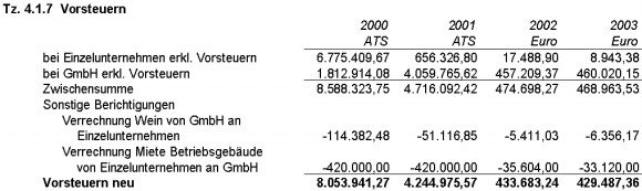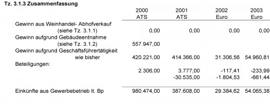 - Aus dem Bericht des Betriebsprüfers über die im Auftrag des Unabhängigen Finanzsenates erfolgte Ermittlung der Besteuerungsgrundlagen 2000 - 2003 inklusive der auf die Sacheinlage entfallenden Umsätze, Vorsteuern und Einkünfte (E-Mail, 16. Mai 2011):