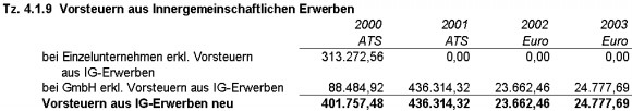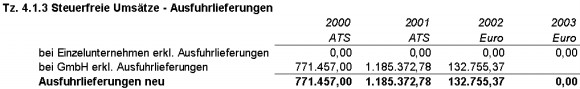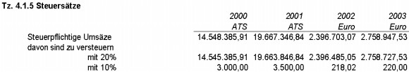2000 ATS 0,00; 2001 ATS 0,00; 2002 EUR 0,00 und 2003 EUR 0,00.
