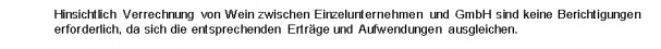 Die von Bw. erklärten Umsätze inkl. Eigenverbrauch aus Abhofverkauf sind bei der GmbH zu erfassen. Bei Bw. fallen somit keine Umsätze inkl. Eigenverbrauch an. Infolgedessen sind auch keine Vorsteuern aus Warenzukäufen (Weinzukäufen) abziehbar.