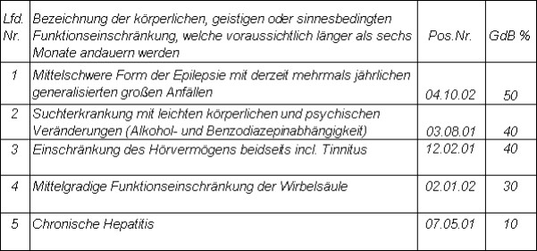 Erneuter Rückfall bei chronischer Alkoholerkrankung und wiederholte Epilepsiege-schehen in den letzten Wochen zeigen eine deutliche Verschlechterung der führenden Leiden und erfordern damit eine höher Einstufung"