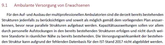 2. Festlegung der Kapazitätsplanungen für die ambulante Fachversorgung – soweit noch nicht vorliegend – gesamthaft bis Ende 2018 unter der Voraussetzung, dass die Grundlagen auf Bundesebene vorliegen mit Angabe der Kapazitäten und Betriebsformen von Spitalsambulanzen sowie Versorgungstypen im ambulanten Bereich sowie Versorgungsaufträgen nach Fachbereichen auf Ebene der Versorgungsregionen (im Sinne des ÖSG) bzw bei Bedarf auch auf tieferen regionalen Ebenen;