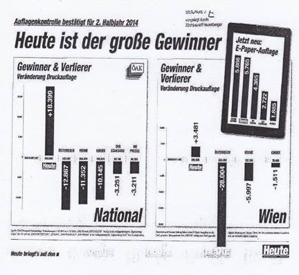 Die ÖAK wies für das zweite Halbjahr 2014 ‑ gesondert nach „Tageszeitungen-Kauf“ und „Tageszeitungen-Gratis“ ‑ in sogenannten Auflagekategorien auch die Druckauflage der von der ÖAK umfassten Zeitungen aus. Die entsprechenden Zahlen für „Heute“ fanden sich bei den „Tageszeitungen-Gratis“.