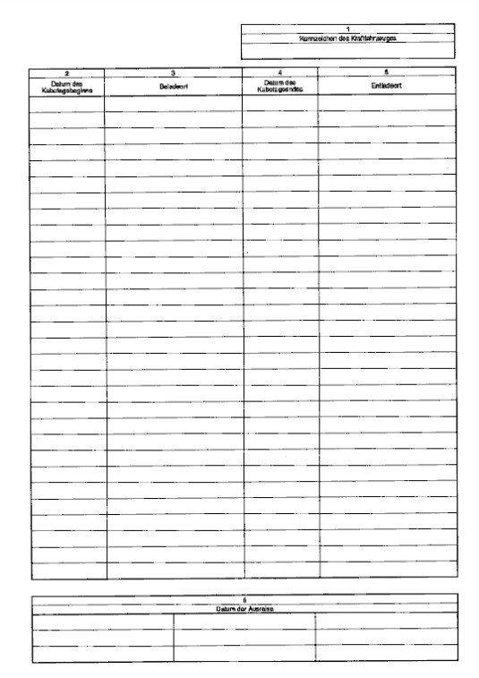 Schlagworte: | Kabotage, Kontrollblatt, Kontrollblätter |