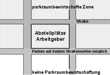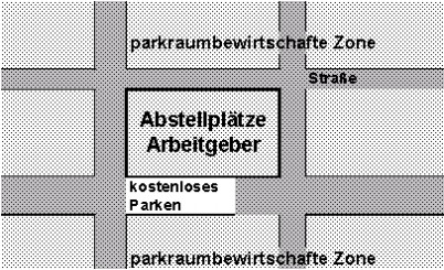 1) Die Abstellplätze einiger größerer Arbeitgeber liegen am Rand der gebührenpflichtigen Parkzone, und zwar so, dass das Abstellgelände zumindest auf einer Seite von einem Straßenzug begrenzt wird, die nicht mehr zur gebührenpflichtigen Parkzone gehört.