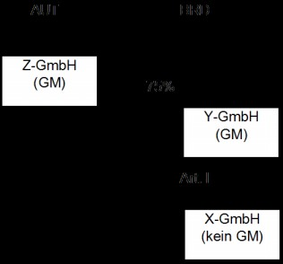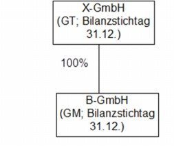 b) Sollte gegenüber der lit. a an der A-GmbH neben dem mit 75% beteiligten Gruppenträger ein Gruppenmitglied Y mit 25% beteiligt sein, wird die 100-prozentige Beteiligung an der B-GmbH aliquot auf den Gruppenträger und das Gruppenmitglied Y übertragen. Beim Gruppenträger ändert sich in diesem Fall die Firmenwertabschreibung nicht, das Gruppenmitglied Y war auch vor der Verschmelzung bereits von der Firmenwertabschreibung ausgeschlossen.
