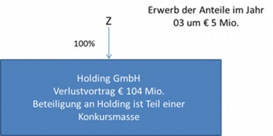 Aus einer Konkursmasse erwirbt Z im Jahr 03 eine Holdinggesellschaft mit Verlustvorträgen von EUR 104 Mio. um EUR 5 Mio.