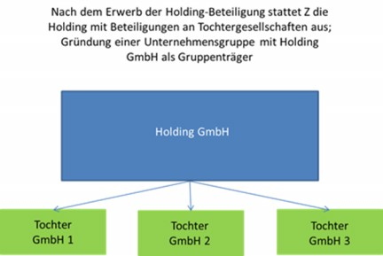 Nach dem Anteilserwerb durch Z wurde die Holding GmbH von Z mit Beteiligungen ausgestattet, weswegen eine wesentliche Erweiterung der übernommenen und weitergeführten wirtschaftlichen Einheit anzunehmen ist.