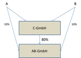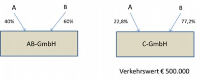 Die AB GmbH verfügt aus ihrer operativen sehr erfolgreichen Tätigkeit zum Bilanzstichtag 28.02.2010 über einen Bilanzgewinn in Höhe von EUR 3,6 Mio. A (22,8%) und B (77,2%) sind auch Gesellschafter der C-GmbH. Diese Gesellschaft verfügt zum 28.02.2010 über einen Bilanzgewinn in Höhe von ca. EUR 170.000. Die C-GmbH betreibt im geringen Umfang Forschung und Entwicklung von Anlagen, sowie die Vermietung der Betriebsliegenschaft an die AB-GmbH. Für ein größeres Projekt besteht aber dringender Kapitalbedarf.