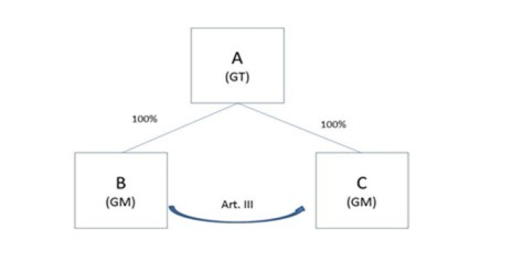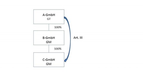 Die Unternehmensgruppe besteht aus dem Gruppenträger A, dessen 100-prozentiger Tochter B und deren 100-prozentiger ausländischer EU-Tochtergesellschaft C. Zudem hält die B eine 100-prozentige Beteiligung am inländischen Gruppenmitglied D. Das Wirtschaftsjahr entspricht bei allen Gesellschaften dem Kalenderjahr.