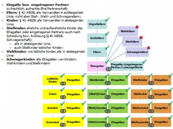 Bei den Lebensgefährten ist zu beachten, dass deren auf- und absteigende Linien nicht zum begünstigten Familienverband zählen.