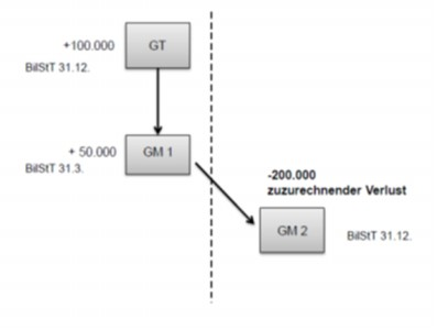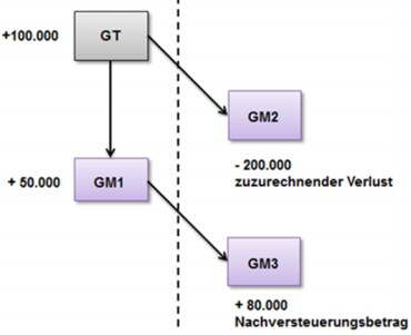 Vortragsfähige Verluste bestehen beim Gruppenträger in Höhe von 30.000. Der Gruppenträger erzielt im Jahre 01 einen Gewinn von 40.000.