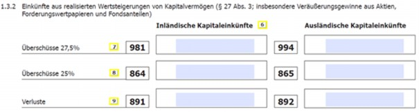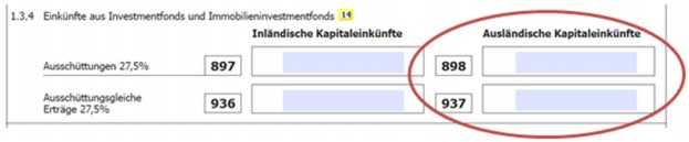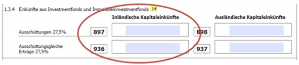 Werden Anteile an einem Investmentfonds, der auf einem ausländischen Depot gehalten wird, veräußert, sind Veräußerungsgewinne in der KZ 994 und Verluste in der KZ 892 einzugeben. Sollen Einkünfte aus der Anteilsveräußerung an einem Investmentfonds, der auf einem inländischen Depot gehalten wird, freiwillig veranlagt werden (zB für Zwecke des Verlustausgleichs), sind die Kennzahlen 981 bzw. 891 auszufüllen. Auch in diesem Fall wäre die konkret für den jeweiligen Realisierungsvorgang durch eine inländische depotführende Stelle abgeführte KESt in der Kennzahl 899 anzugeben.