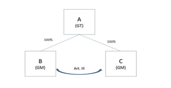 Das beteiligte Gruppenmitglied A hält eine 100-prozentige Beteiligung an der operativ tätigen Beteiligungskörperschaft C (WJ = KJ).