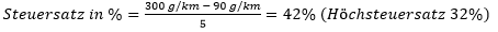 Bemessungsgrundlage netto: 10.000,00 Euro; CO2-Emissionswert: 300 g/km