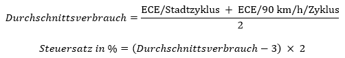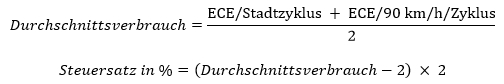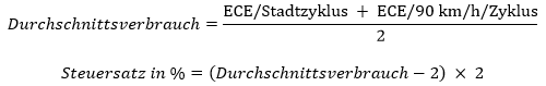Der Steuersatz in Prozent errechnet sich nach den folgenden Formeln:für Benzinfahrzeuge: