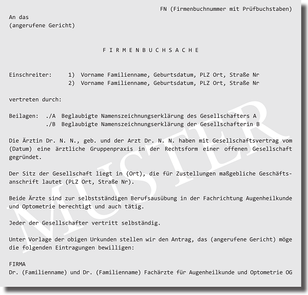 Firmenbuchanmeldung einer ärztlichen Gruppenpraxis in der Rechtsform einer offenen Gesellschaft