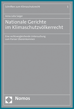 Durch fehlende Sanktionen im Übereinkommen von Paris und einer zunehmenden Anzahl an positiv entschiedener Klimaklagen rücken nationale Gerichte als mögliche Akteure im Klimaschutz verstärkt in den Fokus des politischen und rechtswissenschaftlichen Diskurses. Saiger beschäftigt sich in ihrer im Nomos Verlag in der Reihe „Schriften zum Klimaschutzrecht“ erschienenen Dissertationsschrift ausführlich mit dieser Thematik. Im Speziellen geht sie der Frage nach, welche Rolle nationale Gerichte im Klimaschutzvölkerrecht, insbesondere unter dem Übereinkommen von Paris, einnehmen und wie diese zu bewerten ist. Die Arbeit gliedert sich dabei in drei aufeinander aufbauende Teile. Als Methode wird der funktionale Rechtsprechungsvergleich gewählt, dessen Bezugspunkt das Übereinkommen von Paris ist.