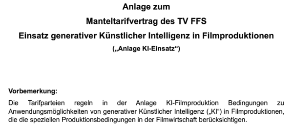 No lights. No camera. All action. Es ist, als würde man etwas Neues filmen, ohne überhaupt etwas zu filmen, um einen ungenannt bleibenden Regisseur zu zitieren. Die deutsche Filmindustrie hat als erste Branche einen Tarifvertrag zur Nutzung von generativer Künstlicher Intelligenz (KI) abgeschlossen1 und damit einen Paradigmenwechsel vollzogen: